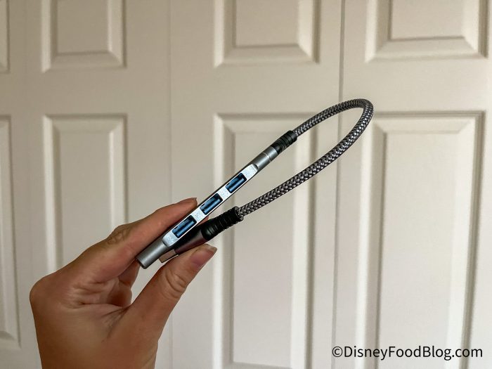 If your travel crew brings a lot of electronics, a small power strip can be a total lifesaver in a Disney hotel room. A flat plug power strip is especially handy because it sits flush against the wall and works well with the sometimes awkwardly placed outlets in hotel rooms. Many of these include several regular outlets plus USB-A and USB-C ports, which means you can charge phones, portable batteries, watches, and other devices all at once. It’s a simple item, but it can completely eliminate the nightly charging shuffle that tends to happen in hotel rooms.