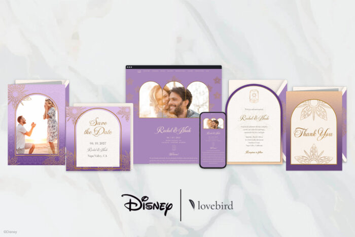 Featuring twelve complete Disney-inspired design suites, The Disney Collection on Lovebird offers Disney-loving couples a cohesive, elegant, and digital-first way to celebrate their big day.