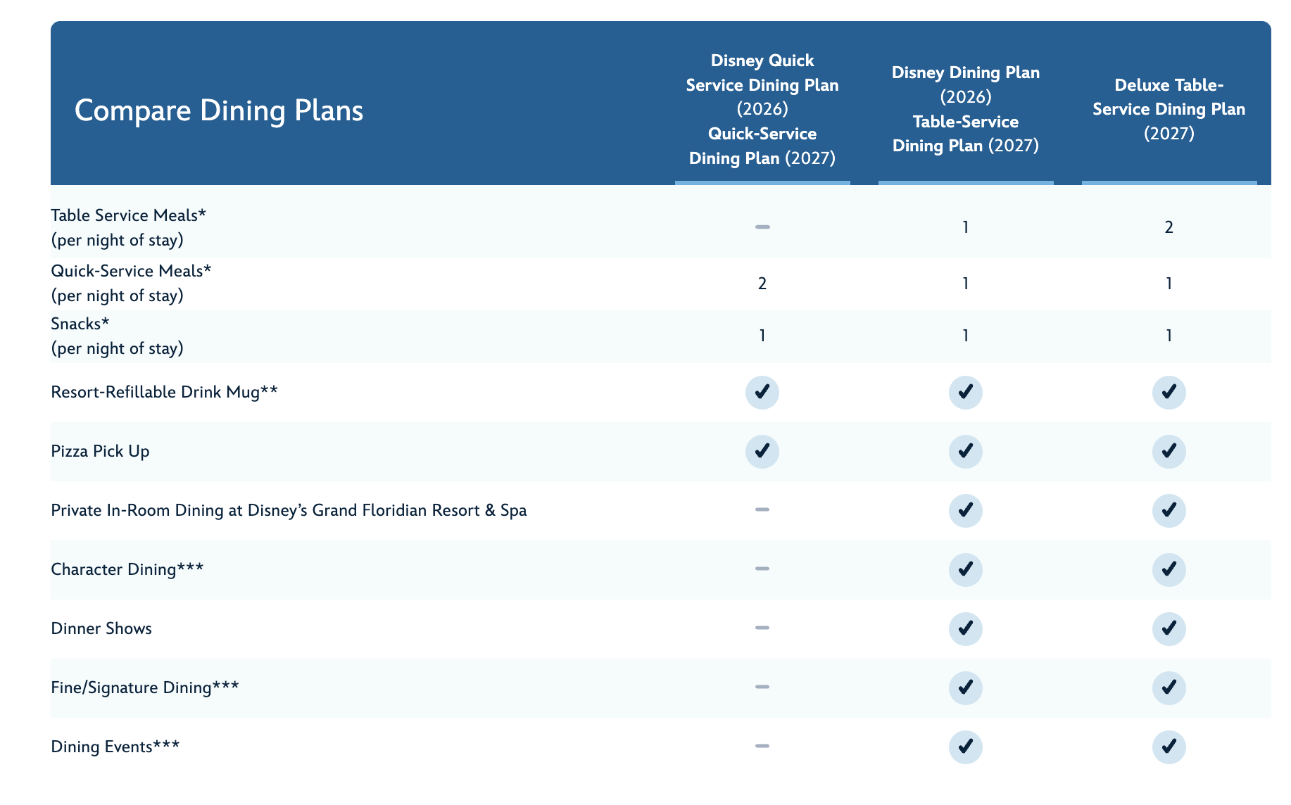 The Disney Deluxe Table-Service Dining Plan includes:
